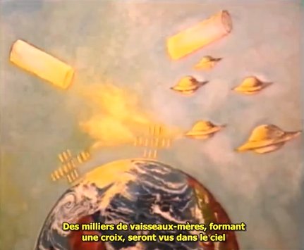 اليكم مزاعم مروجي افكار العصر الجديدhttp://www10.0zz0.com/2015/08/15/19/325334381.jpg الترجمة وصليب كبير ابيض اللون سيظهر في السماء http://www10.0zz0.com/2015/08/15/19/370339664.jpg مما جاء في اللقطة ان آلافا من السفن الام ستشكل صليبا وان تلك السفن ستشاهد في السماء بالمناسبة السفن الفضائية الام موجودة فعلا، هذا ما صرح به نفس قائد المركة التي اختطفت (جون) وزوجته، قال بانه توجد سفنا فضائية منها تنطلق الاطباق الطائرة وهي بعيدة جدا عن الارض لهذا لا يراها الناس، وانها عبارة عن قواعد للمراقبة وتدمير الاطباق الطائرة ان لزم الامر. http://www10.0zz0.com/2015/08/15/19/195238857.jpg الترجمة لاعلان عودة المسيح (المسيح الدجال) طبعا كما قلت لكم سابقا مروجي حركة العصر يحبون المزايدات، بناء على هذا لا يهمنا ما ان كان فعلا سيتم فعلا تشكيل ذلك الصليب في السماء ام لا، ما يهمنا انه للاطباق الطائرة والسفن الفضائية الام بفضل تقنياتها المتطورة قدرة على رسم تجسيم صور في السماء. واليكم مثالا بالمقطع السابق، من يدري ربما طبق طائر هو الذي اسقط تلك الصورة فظهرت في السماء والله اعلم، وطبعا هناك احتمال ان يكون من صنع البشر، اليكم المقطع للتذكير http://media.masr.me/YJLRddgfHgY |