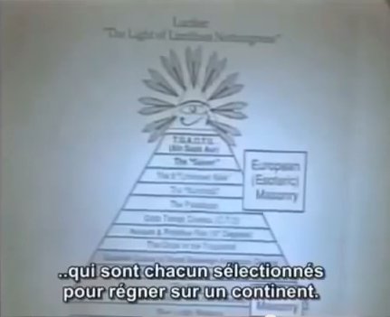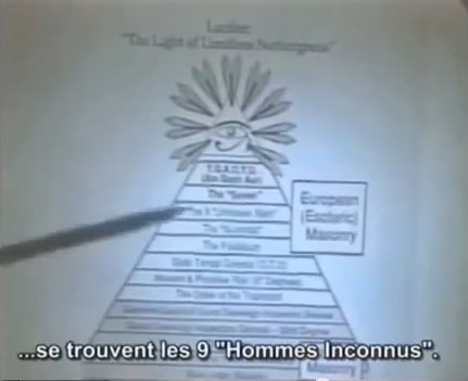 بعد طبقة المتنورين، تاتي اعلاها طبقة les 9 hommes inconnus الترجمة : التسعة رجال غير المعروفين وهم كلهم رجال ولا توجد امراة واحدة بينهم كما يؤكد الرجل، اليكم كلامه http://www12.0zz0.com/2015/06/27/17/523549017.jpg http://www12.0zz0.com/2015/06/27/17/631064645.jpg وفي اللقطة اسفله يبين بانهم من نخبة العارفين بالعلوم الخفية السرية من السحر وتنجيم ...الخ، يعني كل العلوم الباطنية التي لا يعرفها عامة الناس، فاولئك التسعة يعتبرون قمة الاساتذة في المجال ولا يضاهيهم احد، يعني هم حالات استثنائية لا مثيل لها، لهذا هم اكثر علما ومعرفة من المتنورين انفسهم. http://www12.0zz0.com/2015/06/27/17/684134714.jpg واليكم لقطة تابعة وارد فيها كلام الماسوني المنشق http://www11.0zz0.com/2015/06/27/17/402906557.jpg الترجمة الذين (اي الرجال التسعة) تم اختيارهم ليحكموا احدى القارات ( وربما هم داخلون تحت ما يسمى بحكومة الظل) http://www11.0zz0.com/2015/06/27/17/804608727.jpg الترجمة وقد عرفت رجلا كان يحكم امريكا الشمالية، لكنه ميت حاليا ************ وبما ان التسعة المميزين اصحاب حكومة الظل غير معروفين للعامة، فانك لن تجد لهم صورا حقيقية، وانما مجرد رسومات، ربما قد يتم التصريح باسمائهم، لكن بعد وفاتهم وتعويضهم باخرين، اليكم رسومات لهم http://i20.servimg.com/u/f20/14/00/74/96/223.jpg لاحظوا ما هو مكتوب فوق رؤوسهم علامة استفهام دليل على انهم مجهولي الهوية، مع ذلك يتحكمون في مصير البشر لانهم يعتبرون الحكومة الحقيقية http://www.darksite.ch/lapuce/no4/NeufInconnus.gif |