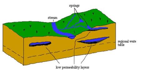 المياه الجوفية Ground Water إن للمياه دور فعال في جميع نواحي الحياة بل وبدونها لا تكون هناك حياة على الإطلاق لقوله تعالى "..... وَجَعَلْنَا مِنَ الْمَاءِ كُلَّ شَيْءٍ حَيٍّ ...." الأنبياء30 فماذا عن طبيعة المياه وكيفية تكوينها وأماكن تواجدها وكيفية البحث عنها وأنواعها وغير ذلك من خصائصها.دورة الماء في الطبيعة: تبدأ الدورة من تبخير المياه Evaporationلأسطح البحار والمحيطات بفعل أشعة الشمس ثم تكثفها Condensationعلى هيئة سحب ثم سقوطها على هيئة أمطار ولكن هناك عوامل أخرى تدخل في تكوين المياه أيضاً فمنها على سبيل المثال وليس الحصر مثل الجبال، فالجبال لها دور في تكوين المياه فقمم الجبال العاتية (الشامخات) تكون باردة فعند اصطدام السحب بها تتكون الشلالات لقوله تعالى "وَجَعَلْنَا فِيهَا رَوَاسِيَ شَامِخَاتٍ وَأَسْقَيْنَاكُمْ مَاءً فُرَاتًا"المرسلات27. وأيضاً نجد للرياح دور فهي تعمل بمثابة لواقح للسحب فينتج عنها سقوط الأمطار لقوله تعالى "وَأَرْسَلْنَا الرِّيَاحَ لَوَاقِحَ فَأَنْزَلْنَا مِنَ السَّمَاءِ مَاءً فَأَسْقَيْنَاكُمُوهُ وَمَا أَنْتُمْ لَهُ بِخَازِنِينَ" الحجر22. وأيضاً تتكون نسبة كبيرة من المياه تصل إلى 70% من خلال البراكين الصاعدة على ظهر الأرض أو تحت مياه البحار والمحيطات وصدق الله العظيم إذ يقول "وَالْأَرْضَ بَعْدَ ذَلِكَ دَحَاهَا (30)أَخْرَجَ مِنْهَا مَاءَهَا وَمَرْعَاهَا (31)". النازعات. وإنه بعد سقوط الأمطار يحدث أن تتشبع الصخور المسامية بالماء وبعد تخزنه داخل خزانات Aquifersوتعرضه لضغوط الطبقات التحت سطحية فإنه يمكن للماء أن يتسرب إلى سطح الأرض خلال الصدوع والفوالق على هيئة ينابيع وصدق الله العظيم إذ يقول "أَلَمْ تَرَ أَنَّ اللَّهَ أَنْزَلَ مِنَ السَّمَاءِ مَاءً فَسَلَكَهُ يَنَابِيعَ فِي الْأَرْضِ ثُمَّ يُخْرِجُ بِهِ زَرْعًا مُخْتَلِفًا أَلْوَانُهُ ثُمَّ يَهِيجُ فَتَرَاهُ مُصْفَرًّا ثُمَّ يَجْعَلُهُ حُطَامًا إِنَّ فِي ذَلِكَ لَذِكْرَى لِأُولِي الْأَلْبَابِ" الزمر21. أو أن يخزن (يسكن) في الأرض على صور متعددة منها خزانات المياه الجوفية وفى هذا يقول الله تعالى " وَأَنْزَلْنَا مِنَ السَّمَاءِ مَاءً بِقَدَرٍ فَأَسْكَنَّاهُ فِي الْأَرْضِ وَإِنَّا عَلَى ذَهَابٍ بِهِ لَقَادِرُونَ"المؤمنون18. ![]() الشكل التالي يبين دورة المياه في الطبيعة طرق تكوين المياه في الطبيعة: 1- وهج الشمس (حرارة الشمس) : إن أشعة الشمس الساقطة على أسطح البحار والمحيطات والبحيرات والأنهار تقوم بعملية تبخير المياه فيتصاعد إلى أعلى الغلاف الجوى فيتكسف على هيئة سحب وعندما يقابل منطقة باردة فتسقط الأمطار. يقول عز وجل: (وَجَعَلْنَا سِرَاجاً وَهَّاجاً * وَأَنزَلْنَا مِنَ الْمُعْصِرَاتِ مَاء ثَجَّاجاً) (سورة النبأ) 2- الرياح: وللرياح دور فعال في عملية تلقيح السحب حيث إنها تكون محملة بالغبار وذرات الملح الناعمة والتي تتكثف حولها قطرات الماء وبالتالي تتكون شحنات كهربية موجبة وأخرى سالبة مما ينتج عنه برق ورعد ثم سقوط أمطار. يقول عز وجل: (اللَّهُ الَّذِي يُرْسِلُ الرِّيَاحَ فَتُثِيرُ سَحَاباً فَيَبْسُطُهُ فِي السَّمَاء كَيْفَ يَشَاءُ وَيَجْعَلُهُ كِسَفاً فَتَرَى الْوَدْقَ يَخْرُجُ مِنْ خِلَالِهِ فَإِذَا أَصَابَ بِهِ مَن يَشَاءُ مِنْ عِبَادِهِ إِذَا هُمْ يَسْتَبْشِرُونَ) الروم. وتأمل معي المراحل التي حددتها الآية الكريمة: ـ إرسالُ الرياح:لترفع ذرات الماء من البحار إلى الجوّ. ـ إثارة السحاب:من خلال تلقيحه وتجميعه. ـ بسطُ السحاب:من خلال الحقول الكهربائية. - جعلُه كِسَفاً:أي قطعاً ضخمة وثقيلة. - نزول الودْق:وهو المطر. 3- الجبال: عند اصطدام السحب بقمم الجبال الشاهقة الباردة تتولد السيول منهمرة إلى أسفل الجبال مكونة الأنهار ومنها ما يتخلل الصخور ذات نفاذية ومسامية مكونة المياه الجوفية. يقول تعالى: (وَجَعَلْنَا فِيهَا رَوَاسِيَ شَامِخَاتٍ وَأَسْقَيْنَاكُم مَّاء فُرَاتاً) [المرسلات: 4- البراكين: البراكين الصا