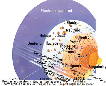 ![]() يتبــــــــــع الموضوع السابق الأدلة العلمية على خلق الكون من العدم خلق المادة لحظة بلحظة: لقد بينت نظرية الانفجار العظيم مرة أخرى أن الله جل جلاله خلق الكون من العدم ويتضمن هذا الانفجار العظيم العديد من المراحل والتفاصيل الدقيقة، التي تحث المرء على التأمل فيها، وهذه الأمور لا يمكن تفسيرها من خلال المصادفة، إذ ينبغي أن تكون مقادير درجات الحرارة في كل لحظة من لحظات الانفجار وعدد الجسيمات الذرية والقوى ذات الصلة، وشداتها في منتهى الدقة· ذلك أنه لو كان حتى واحد فقط من هذه المقادير غير محدد، لما كان لهذا الكون الذي نعيش فيه اليوم أن يتكوَّن ولم يكن هناك مفر من هذه النهاية لو انحرف أي من المقادير المذكورة أعلاه بأية قيمة تقترب رياضيا من ''الصفر وباختصار، لقد نشأ الكون ووحدات بنائه، أي الذرات، كنتيجة مباشرة للانفجار العظيم بعد انعدام وجودها قبل ذلك، وذلك بفضل التوازنات التي خلقها الله وقد أجرى العلماء الكثير من البحوث لفهم التسلسل الزمني للأحداث التي وقعت أثناء هذه العملية وترتيب قواعد الفيزياء المؤثرة في كل مرحلة وتتمثل الحقائق التي يعترف بها جميع علماء الوقت الحاضر الذين بحثوا في هذا الموضوع فيما يلي: اللحظة ''صفر'': هذه ''اللحظة'' التي لم يكن فيها وجود للمادة والزمن، والتي حدث فيها الانفجار، يقبلها العلماء في الفيزياء على اعتبار أنن (الزمن) = صفر ويعني ذلك أنه لم يكن هناك وجود لأي شيء عند الزمن ن = صفر ولكي نتمكن من وصف المرحلة السابقة لنشوء هذه ''اللحظة'' التي بدأ فيها الخلق، ينبغي أن نعرف قواعد الفيزياء التي كانت موجودة آنذاك، لأن قوانين الفيزياء الحالية لا تفسر اللحظات الأولى من الانفجار وتبدأ الأحداث التي قد تستطيع الفيزياء توضيحها بعد مرور 10 -43 من الثانية، التي تعتبر أصغر وحدة زمنية وتمثل هذه الوحدة إطاراً زمنياً لا يستطيع العقل البشري إدراكه· ولكن ماذا حدث في هذه الفترة الزمنية القصيرة التي لا نستطيع حتى إدراكها؟ لم يتمكن الفيزيائيون حتى الآن من وضع نظرية تفسر بتفصيل كامل جميع الأحداث التي وقعت في تلك اللحظة، ذلك أن العلماء لا يمتلكون البيانات اللازمة لإجراء الحسابات إذ يصل نطاق قواعد الرياضيات والفيزياء إلى طريق مسدود عند هذا الحد لأن ما حدث قبل اللحظات الأولى لهذا الانفجار وما حدث في تلك اللحظات، يعتمد في كل تفاصيله على توازنات دقيقة جداً، وله واقع يتخطى حدود العقل البشري والفيزياء لقد أدى هذا الخلق، الذي بدأ قبل ظهور الزمن، لحظة بلحظة إلى تكوين العالم المادي وقوانين الفيزياء والآن، دعونا نلق نظرة على الحوادث التي وقعت بدقة متناهية خلال فترة زمنية قصيرة للغاية أثناء هذا الانفجار· كما ذكرنا سابقا، يمكن حساب كل شيء فيزيائيا بدءا من 10 -43 من الثانية وما يليها، ولا يمكن تعريف الطاقة والزمن إلا بعد هذه اللحظة· فعند هذه اللحظة من الخلق، كانـت درجة الحـرارة 10 32 (100,000,000,000,000,000,000,000,000,000,000) كلفن· والآن، فلنعقد مقارنة، يتم التعبير عن درجة حرارة الشمس بملايين (10 8) الدرجات في حين يتم التعبير عن درجة حرارة بعض النجوم التي يفوق حجمها حجم الشمس بكثير ببلايين (10 11 ) الدرجات وبما أن أعلى درجة حرارة يمكن قياسها في الوقت الحاضر تنحصر في بلايين الدرجات، يتضح لنا مدى ارتفاع درجة الحـرارة عند 10 -43 من الثانية وعندما نخطو خطوة أبعد من الفترة البالغة 10 -43 من الثانية، نصل إلى اللحظة التي يكون فيها الزمن عند 10 -37 من الثانية وتجدر الإشارة هنا إلى أن الفترة الزمنية بين هاتين المدتين ليست ثانية أو ثانيتين، لأننا نتحدث عن فترة زمنية قصيرة في حدود واحد على كوادريليون مضروبا في كوادريليون من الثانية وما زالت درجة الحرارة عالية بشكل غير عادي حيث بلغت 10 29 (100,000,000,000,000,000,000,000,000,000) كلفن ولم تتكون أية ذرات بعد في هذه المرحلة[6]. ![]() خطوة أخرى وسنجد أنفسنا عند 10 -2 من الثانية· تمثل هذه الفترة الزمنية جزءاً من مائة جزء من الثانية وبحلول هذا الوقت، تكون درجة الحرارة قد وصلت إلى 100 بليون درجة وعند 