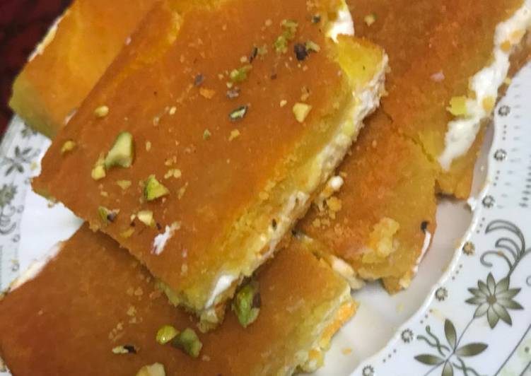السلام عليكم ورحمة الله وبركاته (6) تتكون القائمة من: طريقة عمل ضلع الخروفشوربة البطاطس بكريم الذرة. طبق الأرز باللحم المفروم. سلطة بالصلصة الفرنسية الحلو: بسبوسة بحشوة الكاسترد طريقة عمل ضلع الخروف وقت التحضير 20 دقيقة وقت الطهي 80 دقيقة تكفي لـ 6 أشخاص طريقة عمل ضلع الخروف: http://yumyume.com/image.php?width=4...5c995b687e.jpg المقادير زبدة لورباك ليّنة (للحشوة),200 غرام قرفة مدقوقة (للحشوة), ملعقة كبيرة ضلع خروف ,3 كيلو بصل مفروم,2 حبة زيت زيتون ,2 ملعقة زبدة لورباك ,100 غرام فلفل أسود ,0.50 ملعقة صغيرة زنجبيل ,0.50 ملعقة صغيرة قرفة أعواد,5 حبات كسكس (للحشوة),250 غرام ماء زهر (للحشوة),2 ملعقة زبيب (للحشوة),250 غرام سكر السميد (للحشوة),3 ملاعق كبار لوز مقلي (للحشوة),150 غرام زعفران , ملعقة ماء ,1.50 لتر طريقة التحضير - قلّي الكسكس في قليلٍ من الزيت ، وحاولي فرز الحبات عن بعضها، ثم رشّي عليه الماء ليصبح رطباً، ثم دعيه يجفّ. - عندما يصبح الكسكس دافئاً يرش بقليلٍ من ماء الزهر ويملّح قليلًا ثم يدهن بملعقتين كبيرتين من الزبدة وفي هذه الأثناء، يغسل الزبيب وتنزع عنه العظام (إذا كان بالعظام)، ويترك جانباً. - يرمى الزبيب مع الكسكس ليتبخر وينتفخ بعض الشيء مع الحرص على عدم تركه طويلاً حتى لا ينحل ويفسد. - أفرغي محتوى الكسكس وافصلي حبات الكسكس عن بعضها البعض بالمغرفة ثم بالكفين وادهنيها بالزبدة ثم ضيفي إليها القرفة والسكر السميد واللوز المجروش واخلطي الكل جيداً، وهكذا تكون الحشوة جاهزةً. طريقة الطهي: - بمهلٍ شديدٍ اجذبي الجلد الذي تحت الكتف، مع الحرص على أن لا يمزق، ثم عمّري الضلع بالحشوة وخيّطيها بخيطٍ متينٍ ثم ضعيها في الطنجرة. - ضيفي الزيت والبصل المفروم والزعفران والزنجبيل وعود القرفة ولتر ونصف من الماء. - توضع الطنجرة على نارٍ معتدلةٍ لتطهى مدة ساعةٍ ونصف إلى ساعتين. - من حينٍ لآخر اسقي الضلع بمرقها وقلّبيها بمهلٍ شديٍد حتى لا تنفتح وتتسرب الحشوة. - عندما تتأكدي من نضج الضلع، اخرجيه وضعيه بمفرده في صينيةٍ وادخليه الفرن بعد أن تسقيه بقليلٍ من المرق. - في إناء التقديم، ضعي ضلع الخروف المحمّر بحشوة الكسكس وصبّي المرق فوقها. - زيّني صحن التقديم بأوراق الخس وبقليلٍ من قشر الطماطم والزيتون الأسود. شوربة البطاطس بكريم الذرة المقادير:هذه الصورة تم تصغيرها . إضغط على هذا الشريط لرؤية الصورة بحجمها الطبيعي . أبعاد الصورة الأصلية 512x384 . https://shamlola.s3.amazonaws.com/Sh...156a78106b.jpg تكفي 4 أشخاص. 3 حبات بطاطس مقشرة ومقطعة مكعبات. 1 حبة بصل مقطعة. كوب ونصف لبن حليب مبخر. علبة (418 جرام) كريم الذرة. الطريقة: 1. ضعي البطاطس في قدر كبير مع ماء كافي لتغطيته. 2. يضاف البصل ويقلب. 3. يترك على نار متوسطة حتى يغلي ثم تحفض النار لدرجة متوسطة الإنخفاض ويترك حتى يلين البطاطس (20 دقيقة). 4. يضاف الحليب المبخر وكريم الذرة ويقلبوا. 5. يسخن جيدا لمدة 10 دقائق ويقدم. طبق الأرز باللحم المفروم وقت التحضير: 15 دقائق. وقت الطهي: 45 دقيقة. المقادير: https://www.knorr-kitchen.com/media/....png?width=945 450 جرام لحم مفروم. 1 بصلة صغيرة مقطعة. 1 فص ثوم مفروم. 1 حبة فلفل أخضر حلو، منزوع البذر ومقطع. 1 كوب أرز أبيض طويل الحبة غير مطهي. 400 جرام مرق لحم. ثلثي كوب ماء. مكعب مرق لحم. 340 جرام طماطم معلبة مقطعة. 311 جرام ذرة حلوة مصفاة. نصف ملعقة صغيرة فلفل أسود. 170 جرام جبن موتزاريلا مبشورة. 450 جرام جبن رومي مبشورة. الطريقة: ضعي اللحم المفروم، البصل، الثوم والفلفل الأسود في مقلاة على درجة حرارة متوسطة واطهي حتى يصبح لون اللحم بني. قومي بتصفية الدهون. اخلطي الأرز، المرق، الماء، مكعب المرق، الطماطم والذرة في المقلاة. يتبل بالفلفل ثم يترك ليغلي. تخفض الحرارة لدرجة منخفضة ويغطى ويترك لمدة 25 دقيقة. يغطى بالجبن الموتزاريلا والجبن الرومي ثم يقدم. سلطة بالصلصة الفرنسية المقادير: https://shamlola.s3.amazonaws.com/Sh...8850431785.jpg 2 حبة خيار. 2 حبة جزر. 2 حبة فلفل أخضر بارد. 1 علبة ذرة. 1 علبة فاصوليا حمراء. 1 علبة حمص. ربع رأس ملفوف. ربع رأس خس. مقادير الصلصة : ملعقة كبيرة مايونيز. 2