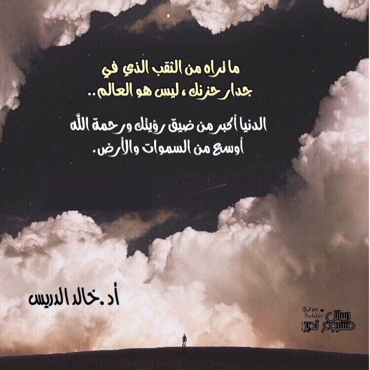 مجالس تدبر القرآن (14) امانى يسرى محمد { وَلاَ تَحْسَبَنَّ اللّهَ غَافِلاً عَمَّا يَعْمَلُ الظَّالِمُونَ إِنَّمَا يُؤَخِّرُهُمْ لِيَوْمٍ تَشْخَصُ فِيهِ الأَبْصَارُ }إبراهيم قال السعدي -رحمه الله-: هذا وعيد شديد للظالمين، وتسلية للمظلومين، قد يضيق صدرك ، ويحاصرك الحزن ، ويعصف بك القلق ولا مخرج لك إلا ذكر الله: { أَلاَ بِذِكْرِ اللّهِ تَطْمَئِنُّ الْقُلُوبُ} الرعد * عايض المطيري (وَمَنْ هُوَ مُسْتَخْفٍ بِاللَّيْلِ) الرعد أيها المستخفِ بالليل احذر ولا تستخف عن أعين الناس بمعصية... استخفِ بركيعات بين يدي من يراك ويعلم سرك وجهرك.. (اللَّهِ الَّذِي لَهُ مَا فِي السَّمَوَاتِ وَمَا فِي الأَرْضِ) إبرهيم إن كانت لك حاجة فكن عزيز النفس ولا تقف على الأبواب بل اطرق باب من بيده مفاتيح كل شيء مها العنزي لا تكتمل الأخوّة ؛ ولا تقع لذة المودة ؛ إذا كانت النفوس تتلجلج فيها جرثومة الغلّ (وَنَزَعْنَا مَا فِي صُدُورِهِم مِّنْ غِلٍّ إِخْوَانًا عَلَى سُرُرٍ مُّتَقَابِلِينَ) (الحجر) سلامة الصدر طريق إلى الجنة~ فأول زمرة تدخل الجنة: "...لا اختلاف بينهم ولا تباغض، قلوبهم على قلب رجل واحد.."[البخاري]. { فَاصْفَحِ الصَّفْحَ الْجَمِيلَ } الحجر الصفح الجميل هو الذي لا عتاب فيه ولا لوم. فما أحوجنا لهذا التوجيه الرباني الكريم* { مَنْ عَمِلَ صَالِحًا مِّن ذَكَرٍ أَوْ أُنثَى وَهُوَ مُؤْمِنٌ فَلَنُحْيِيَنَّهُ حَيَاةً طَيِّبَةً ..}النحل هي حياة قلب لا حياة جسد ... { يَوْمَ تَأْتِي كُلُّ نَفْسٍ تُجَادِلُ عَن نَّفْسِهَا } النحل قد يجادل البعض هنا عنك، لكن هناك لن تجد أحداً ، أنت المحامي الوحيد. * عايض المطيري { ذَرْهُمْ يَأْكُلُوا وَيَتَمَتَّعُوا وَيُلْهِهِمُ الْأَمَلُ }الحجر ما غفلت نفسٌ إلا بطول أمل صارف عن العبادة ومشغل عن العمل. { وَاصْبِرْ وَمَا صَبْرُكَ إِلاَّ بِاللّهِ وَلاَ تَحْزَنْ عَلَيْهِمْ وَلاَ تَكُ فِي ضَيْقٍ مِّمَّا يَمْكُرُونَ } كُلّما هاجت النفسُ ألمًا وجَزعًا ، روّضتها هذه الآية . "وَمَنْ يَقْنَط مِنْ رَحْمَة رَبّه إِلَّا الضَّالُّونَ" (الحجر) تأمل (إلا الضالون) مخطئون حتما أولئك الذين يشعرون أن أحوالهم الصعبة لن تتغير!! د. عبدالله بن بلقاسم |
