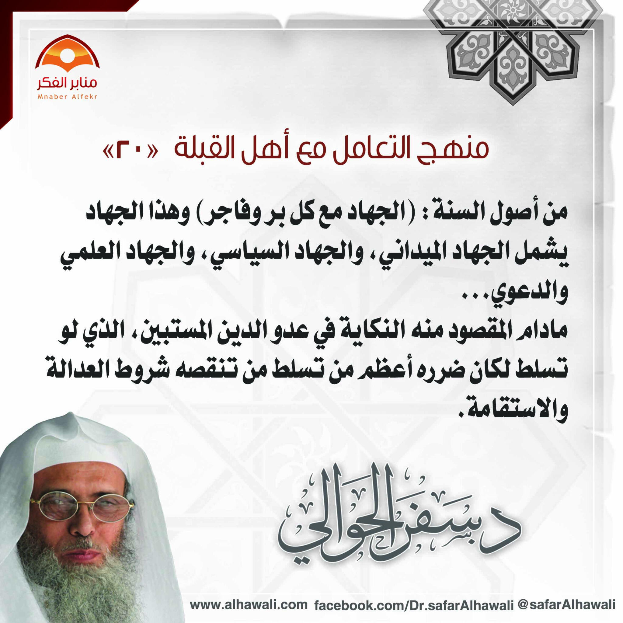 هو موضوع مهم وفي وقت أهم.. باختصار.. إن أعداء الله تعالى من اليهود والنصارى والمرتدين وأهل الملل الكافرة يتربصون بأهل الإسلام وينتظرون الفرصة للقضاء عليهم. وهاهم قد أحكموا قبضتهم الحديدية على أغلب ديار المسلمين سواء بالقوة العسكرية أو بتنصيب عملائهم من المرتدين، فهل يجب على المسلمين ترك الجهاد والحالة هذه حتى يخرج لنا من الأرض أو ينزل لنا من السماء إمام معصوم أو إمام بلغ الغاية والكمال في التقى والرشد؟! إلى آخر التساؤلات .... الصحيح في هذا الحال؛ أن يقاتل المسلمون أعداء الله تعالى - سواء في جهاد الدفع أو الطلب - خلف من يقيم الجهاد ومعه، وإن كان به بعض التقصير أو العصيان، وفي هذا تحصيل لأعظم المصالح ودفع لأعلى المفاسد، فإن المسلمين بين أمرين.. -إما الجهاد خلف هؤلاء الأمراء ودفع عدوان الكافرين. -أو ترك الجهاد بالكلية، والذي ينبني عليه ما نراه ونشاهده في بلادنا من علو الكفر وأهله وضياع شريعة الله تعالى وانتشار الفساد والظلم. ولذلك قال ابن قدامة رحمه الله تعالى في بيان ذلك، في شرح قول الخرقي رحمه الله: (ويُغزى مع كل بر وفاجر)، قال ابن قدامة رحمه الله: (يعني مع كل إمام. قال أبو عبد الله - يعني أحمد بن حنبل - وسئل عن الرجل يقول: أنا لا أغزو ويأخذه ولد العباس، إنما يوفر الفيء عليهم! فقال: "سبحان الله هؤلاء قوم سوء هؤلاء القعدة مثبطون جهال، فيقال: أرأيتم لو أن الناس كلهم قعدوا كما قعدتم من كان يغزو؟! أليس كان قد ذهب الإسلام؟! ما كانت تصنع الروم؟!". ولأن ترك الجهاد مع الفاجر؛ يفضي إلى قطع الجهاد وظهور الكفار على المسلمين واستئصالهم، وظهور كلمة الكفر وفيه فساد عظيم، قال الله تعالى: وَلَوْلَا دَفْعُ اللَّهِ النَّاسَ بَعْضَهُمْ بِبَعْضٍ لَفَسَدَتِ الْأَرْضُ وَلَكِنَّ اللَّهَ ذُو فَضْلٍ عَلَى الْعَالَمِينَ}) [3] كان عمر بن الخطاب رضي الله عنه يقول: "اللهم إني أشكو إليك جلد الفاجر وعجز الثقة"، فالواجب في كل ولاية الأصلح بحسبها...). إلى أن قال رحمه الله: (فيقدم في إمارة الحرب الرجل القوي الشجاع - وإن كان فيه فجور - على الرجل الضعيف العاجز وإن كان أميناً. كما سُئِل الإمام أحمد عن الرجلين يكونان أميرين في الغزو، وأحدهما قوي فاجر والآخر صالح ضعيف، مع أيهما يُغزى؟ فقال: "أما الفاجر القوي فقوته للمسلمين، وفجوره على نفسه، وأما الصالح الضعيف فصلاحه لنفسه وضعفه على المسلمين، فيغزى مع القوي الفاجر". روى أبو داود في سننه من قوله صلى الله عليه وسلم: "الغزو ماض منذ بعثني الله إلى أن يقاتل آخر أمتي الدجال، لا يبطله جور جائر أو عدل عادل".. والله المستعان |