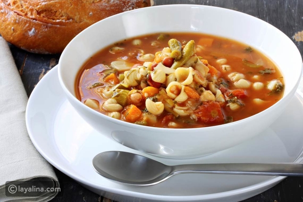 أضيفي بقية المكونات ما عدا المكرونة , عند غليان المزيج , خففي النار واتركي القدر علي النار لمدة نصف ساعة حتى تنضج الخضار .