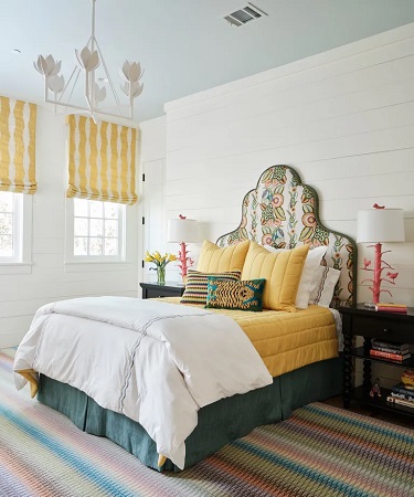 لا يجب أن تقتصر الألوان على الجدران، فالسقف يمكن أن يصبح عنصرا مدهشا في الغرفة باعتباره "الجدار الخامس"، يمكن تلوينه أو تغطيته برسومات وخرائط لتوسيع خيال الطفل، أيضا، يضفي اللون الأصفر الناعم طاقة إيجابية ويمنح شعورا بالتفاؤل، خصوصا عند دمجه مع الإضاءة الطبيعية، أما الأقمشة والوسائد والستائر، فهي وسيلة عملية لتجديد الألوان وإضافة أجواء من الدفء والبهجة دون عناء.