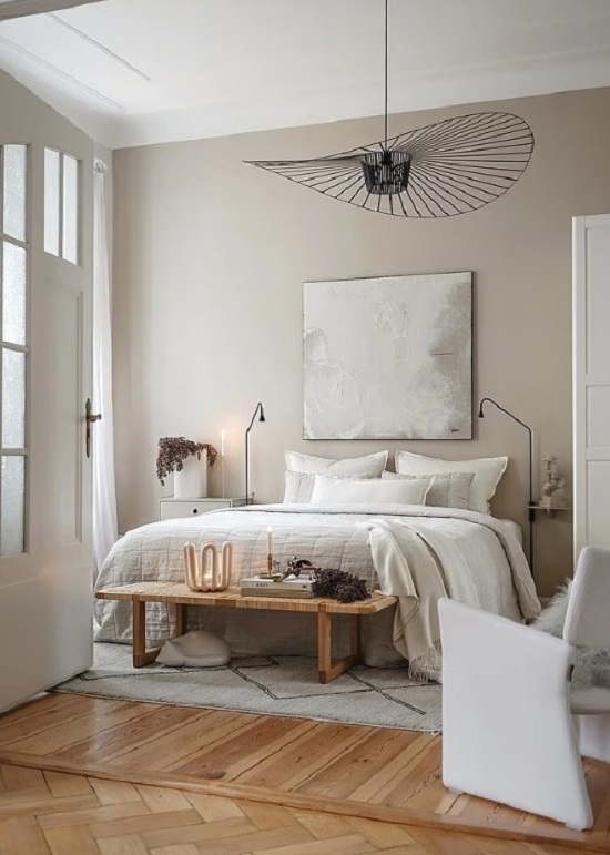 تتجه غرف النوم بشكل متزايد نحو الابتعاد عن اللون الأبيض الناصع لصالح ألوان محايدة أكثر دفئًا ونعومة، تُضفي إحساسًا بالتداخل ويُشكّل اللون الأبيض الحجري وما شابهه من درجات اللون أساسًا للعديد من تصاميم عام 2026.