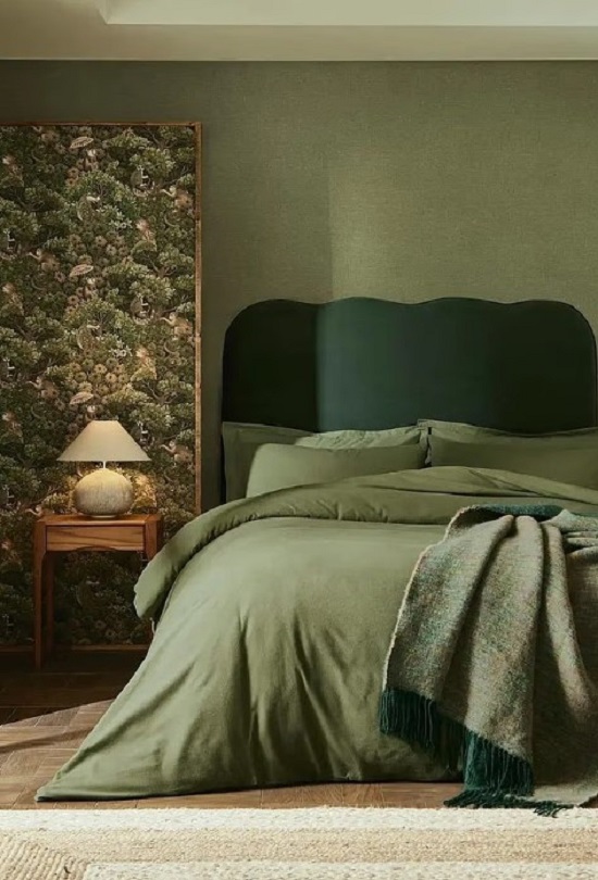 لا تزال درجات اللون الأخضر الترابي تهيمن على التصميمات الداخلية، لكنها ستصبح في عام 2026 أكثر عمقاً ودفئاً. ويبرز اللون الأخضر الطحلبي، كأبرز إتجاهات ألوان غرف النوم لأنه من الألوان المهدئة للأعصاب ولا تزال توليفات درجات الأخضر الطحلبي والأحمر الداكن والألوان المحايدة الناعمة رائجة لخلق أجواء دافئة وجذابة في غرف النوم.