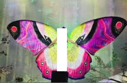 وهي تضع قناع فراشة على وجهها اشارة الى المشروع