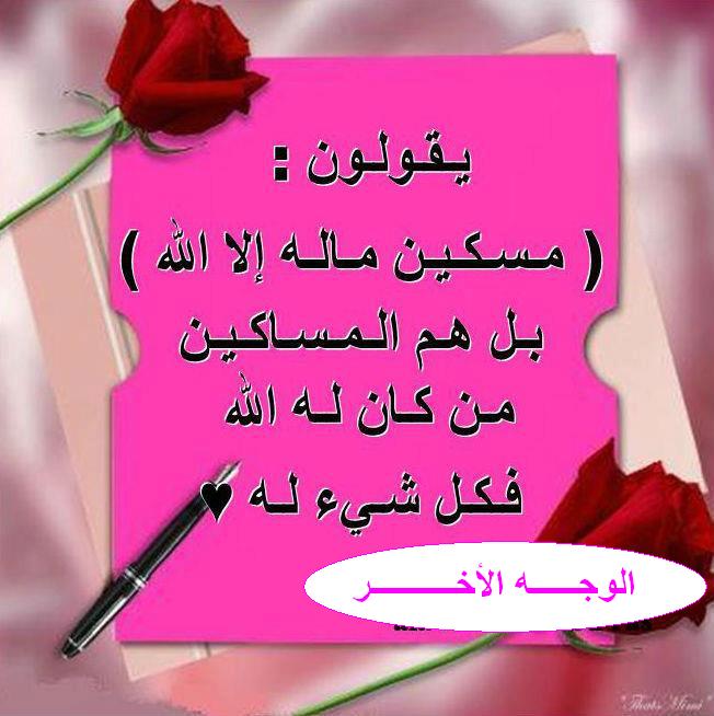 *ظروفك الخاصة لك وحدك وأدبگ في الكلام حق للجميع ، لا تخلط مشاگلك ، وظروفك النفسية ، بتعآملك مع الآخرين . *الإبتعآد عن آلنآس فترة يكشف أشخاصآ رآئعين ويكشف آشخاصآ خآبت الآمال بھٓم : الإنسان الأنيق في تعامله .. وحديثـه : يقتحـم أعماق كل من يقابله ... ويحظى بإحترام الجميع بطريقته .. كن بسيطاً تكن أجمل ! *لا تخبروا الناس بكل شيء جميل تملكونهَ، ليَس الجميع لديَهمَ .. حُسن النوآيا بل معظمهم لديه الحسد والغيرة ...! *أحياناً نضحك والهموم تلف بنا من كل جهة ، ليس لأننا عديمي الإحساس ولكن لأننا نملك أنفسا تؤمن بأن بعد العسر يسراً *كلام الناس مثل الصخور إمّا أن تحملها على ظهرك "فينكسر"، أو تبني بها برجاً تحت أقدامك فتعلو "وتنتصر"! *لا تحگم على مستقبلك منَ االان .. ' ف الأنبياء عليهم الصلاة والسلام/ رعۆا الغنم ثم قادوا :الأمم *ملوحة البحر لاتتأثر مع كثرة المطر فكن كالبحر لايتأثر بكلام البشر, ولا تكره أحدا أبدا فكل من آذاك أعطاك درسا على طبق من ذهب وهو لايعلم.