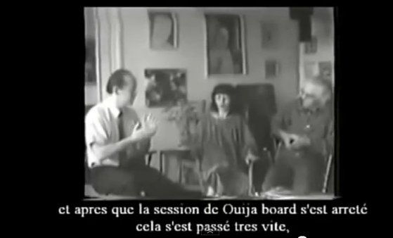 اليكم اللقطات مع ترجمة الكلام الوارد فيها من كلام الوسيطة الروحية ![]() بدات بشراء لوحة ويجا ![]() وبعد واحدة او اثنتين من المحاولات بدات تظهر بعض النتائج من استعمال اللوحة ![]() وفقط ربما بعد خمس ست او سبع جلسات ![]() الروح (سيث) ظهر لها بصوته ![]() هنا تقول الوسيطة بانها بدات تسعى لمعرفة ما يريد ان يقوله الروح ويتحدث به ![]() وبعد ذلك اوقفت جلسة لوحة الويجا ، وان ذلك مر سريعا تابعوني |