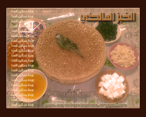 أخياتي الغاليات ![]() ![]() ▨▨▨ الخُبز المَالكي ▨▨▨ ▨▨▨ نبذة تعريفية عن الخبز المالكي ▨▨▨هذا الخبز تشتهر به قبيلة ( بني مالك بجيلة ) وهو خبز مميز بطريقته .. وشكله .. وطعمه اللذيذ وممكن أن يكون خمير .. أو فطير والخًمِير : هو ما يخمر بــ إضافة الخميرة للعجين وتركها تستريح لمدة ساعة على الأقل قبل البدء في العمل أما الفَطِير : فهو بدون إضافة خميرة .. حيث يتم إعداد العجين وعمل الخبز في آن معاً والنوع الذي قمت بــ إعداد لكم هو .. الخبز الخمير ولا يفوتني أن اذكر لكن أخياتي .. أن هذا الخبز يعتبر صنف نادر ومميز وعلى حد علمي .. أنه لا توجد أي قبيلة أخرى تقوم بإعداده حسب هذه الطريقة وبهذا الشكل .. مما يجعله حكراً على بني مالك بجيلة بل وربما البعض من القبائل التي تحتضنها .. خاصة في السُّراة دون تهامة ..!! وقد بحثت عنه في الإنترنت كثيراً .. لكنني لم أعثر على أي طريقة مصورة ولا حتى مكتوبة .. لطريقة إعداده مما يجعل طريقتي هذه .. والتي طرحتها مسبقاً عبر مدونتي على بلوجر .. ربما تكون الأولى في عالم الإنترنت ..!! ![]() ▨▨▨ المقادير ▨▨▨ كمية المقادير تعتمد على عدد الأشخاص لذلك لن أتقيد بمقدار معين .. ولكننا سنحتاج إلى ما يلي : دقيق بُر أو عادي .. ودقيق البُّر أفضل وألذّ ماء دافيء ملح ملعقة صغيرة خميرة فورية ![]() ▨▨▨ طريقة إعداد العجين ▨▨▨ - يوضع الماء في طنجرة عميقة وتضاف إليه الخميرة ثم تحرك حتى تذوب باستخدام مضرب سلك يدوي - يضاف الملح ويكون على حسب الرغبة .. ممكن نخفف منه - نضيف الدقيق بالتدريج مع التحريك حتى نحصل على عجينة شبه سائلة وخالية من التكتلات ( تكون قريبة نوعاً ما إلى عجينة الكيك ) - نغطي الطنجرة ونترك العجين في مكان دافيء حتى يختمر ( ممكن ساعتين أو أكثر حسب حرارة الجو) - بعدما تختمر .. يا حبذا لو تدخل إلى الثلاجة لمدة لا تقل عن ساعة حتى تبرد .. وبالإمكان البدء في عملها دون هذه الخطوة ![]() ![]() ▨▨▨ طريقة إعداد الخبز ▨▨▨ - توقد إحدى عيون الفرن العلوية ( التي على سطح الفرن ) وتوقد أيضاً العين الداخلية العلوية ( وليست السفلية ) المالكيات بيفهموا أكيد .. لكن كلامي موجه لغيرهم ممن سيمر على الموضوع - يحرك العجين .. ثم توضع الطاوة ( الصاج ) على النار لتحمى قليلا - يصب مقدار من العجين في الصاج ويفرد ويساوى ثم يعاد على النار العالية حتى يكتمل تكون الثقوب على وجهه مثل ما هو ظاهر بالصور حيث رتبتها حسب الخطوات ![]() - طبعا ما تكمل النكهة والطعم إلا بــ لمسة غصن ريحان نظيف على وجه الخبز بعد غمسه في السمن وهذه صورة نبات الريحان ![]() الصورة النهائية ![]() طبعا أكيد الكل بيعرف اشلون يتقدم ومتى .. يعني ما يحتاج شرح للي ما يعرفوا الخبز المالكي .. باختصار .. هذا الخبز يقوم مقام أغلب أنواع الخبز المعروفة يعني مع الإيدامات .. والمعلبات .. والفول والعدس ............... إلخ أما في شهر رمضان المبارك .. فــ له شأن آخر ولا أبالغ إن قلت أنه عميد السفرة لكن ما يجعله فريداً من نوعه .. هو النكهة والطعم الذي يتميز به عن غيره من أصناف الخبز الشعبية الأخرى ![]() وعليكم بالعافية والصحة والهناء ![]() ![]() منقول بوركت صاحبة الموضوع