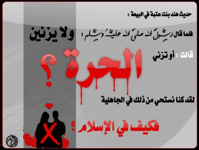 ![]() كوني حرة وبايعي نبيك صلى الله عليه وسلم على العفة ![]() كوني حرة وبايعي نبيك صلى الله عليه وسلم على العفة، فهذه هند بنت عتبة تأتي رسول الله صلى الله عليه وسلم برفقة النساء ليبايعنه على الإسلام فيقول النبي صلى الله عليه وسلم"تبايعن على ألا تشركن بالله شيئا ولاتسرقن و لاتزنين ولا تقتلنأولادكن....." فما أن سمعت هند"ولاتزنين"وقالت قولتها المشهورة " فهل تزني الحُرَّة؟؟" نعم الحرة لاتزني فكيف إذا كانت الحرةمسلمة؟؟ وكيف إذا كانت الحرة مؤمنة؟؟ فالحرة تملك أن تقيم حياتها على السعادة......على الرضا.......على الاطمئنان و السعادة والاطمئنان أن ترضي ربك حتى تكوني إنسانة كريمة عفيفة حتى تكوني حرة إسمعي نداء ربك إليك "ولاتقربوا الزنا انه كان فاحشة و ساءسبيلا" (الاسراء32) انه القانون الرباني:إذا اقتربت ......احترقت فاحذري محطات الاقتراب الحبالكاذب.....والغرام الخادع: وإعلمي أنه لاينتهي إلى الزواج بل إلى الحسرة و العبث بك وبمشاعرك الثقة في قناصي الفتيات الباحثين عن الصيدفانه: يتحايل و يعطيك الابتسامة حتى تطمئني يعطيك الهوى حتى يستحكم فيك ويعطيك الوعود حتى يستوثق منك.....وبعدها........ تكون الندامةوتخسري عفتك؟؟؟؟؟؟؟؟؟ إحذري الإنزلاق إلى التجربة خرجة في الخفاء خرجة لتخوضي تجربة الخيانة خيانةالله و رسوله خيانة الأمانة خيانة الوالدين خيانة زوج المستقبل احذري الدخول في برنامج اسر العواطف بالمكالمات......بالاتصالات.... ....بالهدايا.... لاتقتربي و لاتقتربي ولا تقتربي وإعلنيها شعارا كل هذا وأنت تطمعين في الوفاء... فلا يكون إلا العار .... والحسرة ....والندامة لن أضيع عفتي لن أدوس كرامتي وسأكون حرة عفيفة ![]() كونى فتاة حرةتأبى الخلاعة و المجون لا يغرينكى ماجن إياكى عرضك أن يهون لا تبخسي ثمن العفاف لمن يظن بك الظنون قال الجناة تحرري أوهكذا المتحررون من يستحلون الزنا أم من بعرضك يعبثون هل صار عرضك مرتعا يتقاسموه الساقطون ما أنت مرضياة الهوى ما أنت ملحمة الجنون بل أنت عاصمة المنى في أرضيها يرعى البنون بل أنت أجمل زهرة ريانة فيها الغصون بل أنت أغلى درة خلقت لتحفظ في العيون يأويكى حضنا دافئا فى مسكن الزوج الحنون